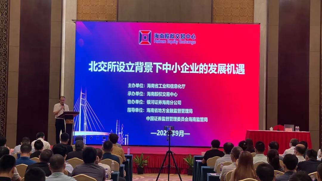 為幫助我省中小企業(yè)深入了解北京證券交易所,掌握資本市場(chǎng)的新機(jī)遇,9月24日,海南省工業(yè)和信息化廳聯(lián)合海南股權(quán)交易中心邀請(qǐng)業(yè)內(nèi)資深專家舉行“北交所設(shè)立背景下中小企業(yè)的發(fā)展機(jī)遇”主題培訓(xùn),幫助中小企業(yè)熟悉資...