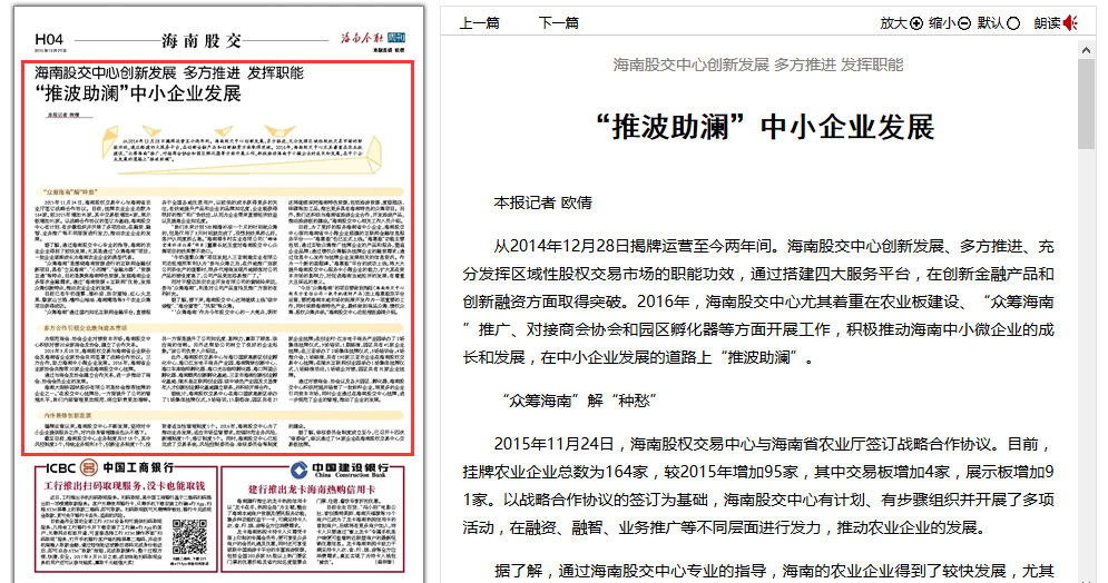 近日,證券導(dǎo)報(bào)以兩個(gè)版面整版報(bào)道海南股權(quán)交易中心兩周年,關(guān)注股交中心兩年以來(lái)的發(fā)展。