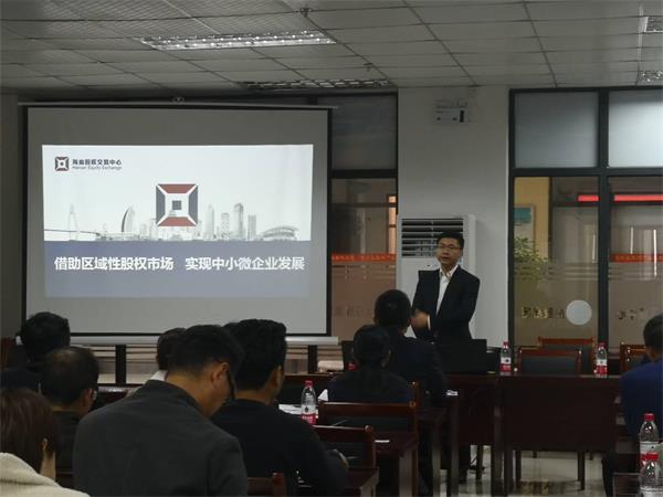 1月16日,為幫助海南西部中小企業(yè)通過資本市場,實現(xiàn)健康發(fā)展,進一步解決企業(yè)融資難的問題,由海南股交和海南西部創(chuàng)新創(chuàng)業(yè)產業(yè)園共同舉辦的“借助區(qū)域股權交易市場,實現(xiàn)中小企業(yè)健康發(fā)展”專題培訓活動在海南西部創(chuàng)新創(chuàng)業(yè)產業(yè)園會議室舉行。海南西部創(chuàng)新創(chuàng)業(yè)產業(yè)園董事長任工廠、海南股交執(zhí)行總經理程棟才、海南股交業(yè)務骨干及30家園區(qū)企業(yè)代表參加了本次培訓活動。