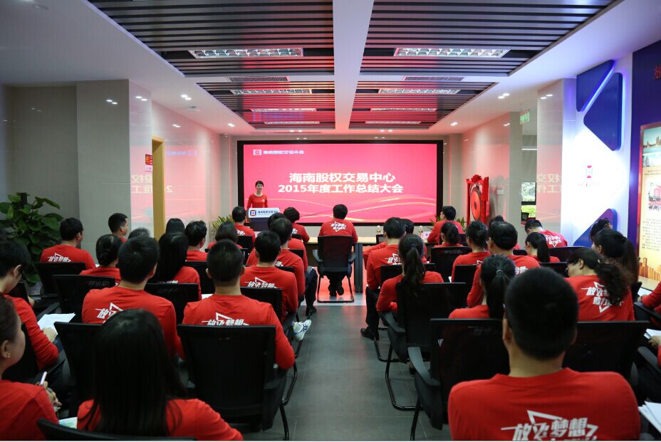 1月7日下午,新年伊始,海南股權交易中心在海南老城經(jīng)濟開發(fā)區(qū)海南生態(tài)軟件園B13號樓召開了2015年度工作總結會議。會議對2015年度工作進行總結,并對2016年工作做了規(guī)劃,股交中心董事長李曉剛,總裁班淼琦,副總裁吳惠玉、陸瑋、程棟才,以及股交中心海南、北京、上海、深圳四地的全體員工參加了本次會議。