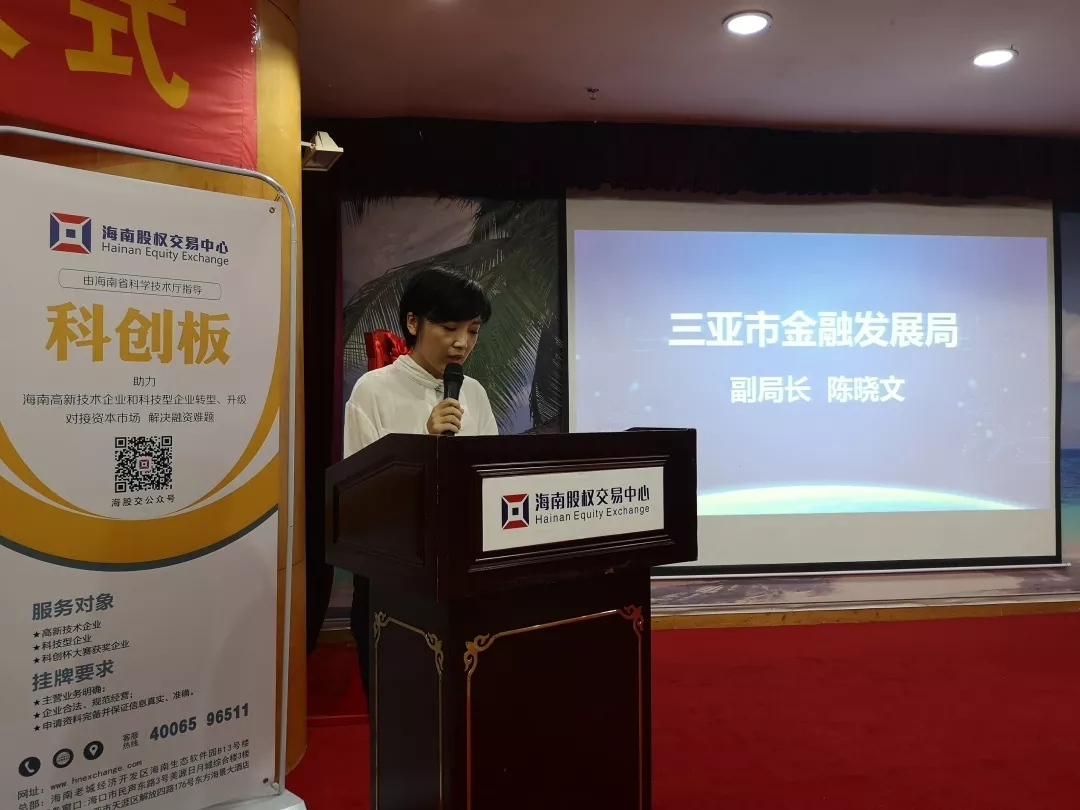 陳曉文在發(fā)言中首先對(duì)企業(yè)成功掛牌表示祝賀,并對(duì)海南股交的大力支持表示感謝。她說,在多層次資本市場(chǎng)上市掛牌融資,是企業(yè)擴(kuò)大規(guī)模、加快發(fā)展、提高運(yùn)行質(zhì)量和核心競(jìng)爭(zhēng)力的有效手段。一個(gè)地方企業(yè)上市數(shù)量的多少,是這個(gè)地方經(jīng)濟(jì)活躍程度和競(jìng)爭(zhēng)能力強(qiáng)弱的重要標(biāo)志,體現(xiàn)了這個(gè)地方企業(yè)的總體發(fā)展水平。此次集中掛牌不僅是三亞市推動(dòng)企業(yè)對(duì)接資本市場(chǎng)工作的一次集中展示,也是宣傳并提升企業(yè)品牌影響力的重要機(jī)遇。今后,三亞金融發(fā)展局將持續(xù)加大對(duì)企業(yè)上市掛牌工作的支持力度,為發(fā)展多層次資本市場(chǎng)制定相關(guān)政策鼓勵(lì)企業(yè)掛牌上市,進(jìn)一步拓寬企業(yè)融資渠道。同時(shí)他希望企業(yè)要以此次掛牌為契機(jī),利用海南股交在融資、展示、輔導(dǎo)等方面的功能和優(yōu)勢(shì),進(jìn)一步規(guī)范治理結(jié)構(gòu)、建立現(xiàn)代企業(yè)制度、拓寬融資渠道、樹立品牌形象,實(shí)現(xiàn)創(chuàng)新發(fā)展和轉(zhuǎn)型升級(jí)。