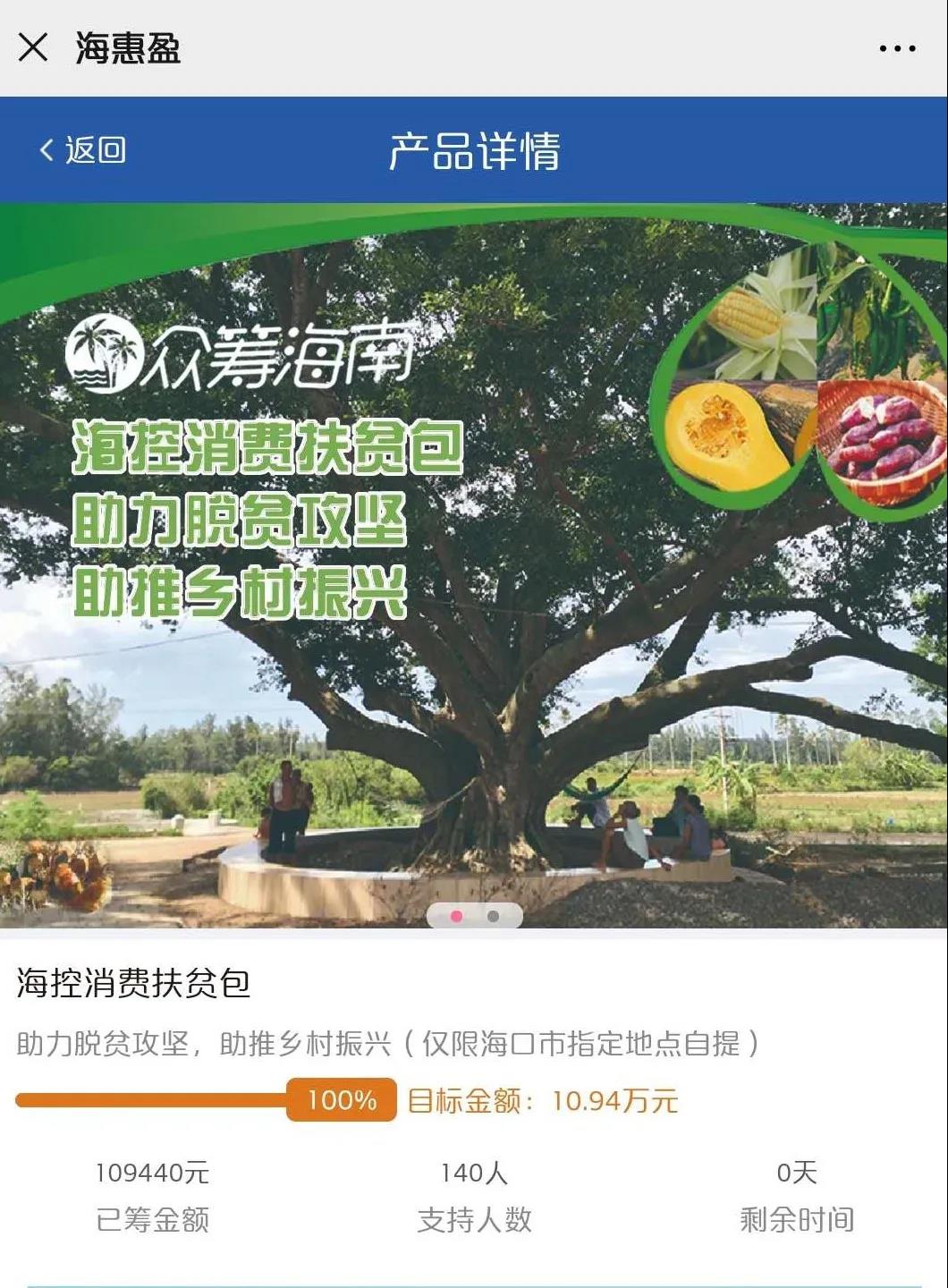 為認真貫徹落實習近平總書記關(guān)于開展消費扶貧行動的重要指示精神,有效應對疫情對我省農(nóng)產(chǎn)品產(chǎn)銷及貧困戶穩(wěn)定脫貧造成的不利影響,在總公司海南省發(fā)展控股有限公司(以下簡稱“海南控股”)的統(tǒng)籌指導下,海南股交充分利用旗下“海惠盈”微信平臺的功能優(yōu)勢,推出“??叵M扶貧包”產(chǎn)品眾籌項目,以實際行動為貧困戶“帶貨”,助力打贏脫貧攻堅戰(zhàn),一起扶貧“買買買”!