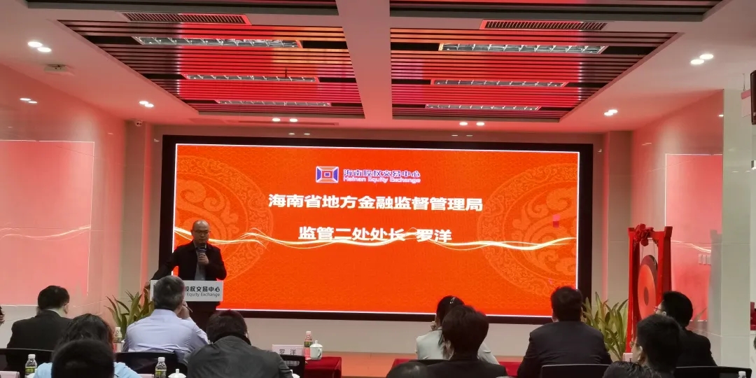 12月28日上午,海南股交企業(yè)掛牌暨企業(yè)表彰儀式在老城軟件園辦公樓交易大廳舉行。海南省地方金融監(jiān)督管理局監(jiān)管二處處長羅洋、海南省工業(yè)和信息化廳中小企業(yè)處副處長孫丹、海南金融控股股份有限公司黨總支委員、副總經(jīng)理吳曄軍,黨總支委員總經(jīng)理助理朱宏亮、海南大唐發(fā)控股權(quán)投資基金管理有限公司董事長王濤、深圳同創(chuàng)天策企業(yè)發(fā)展有限公司董事長蔡成巨以及掛牌企業(yè)代表、媒體記者等近80余人參加了此次活動。