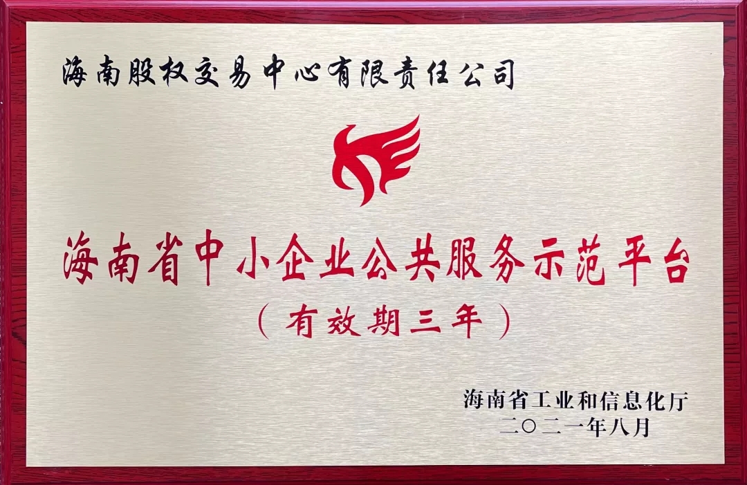 2021年8月,海南股交入選第二批“建議支持的國家(或省級)中小企業(yè)公共服務(wù)示范平臺”名單。證明了海南股交服務(wù)“專精特新”中小企業(yè)的能力獲得了工信部及省工信廳的認可。