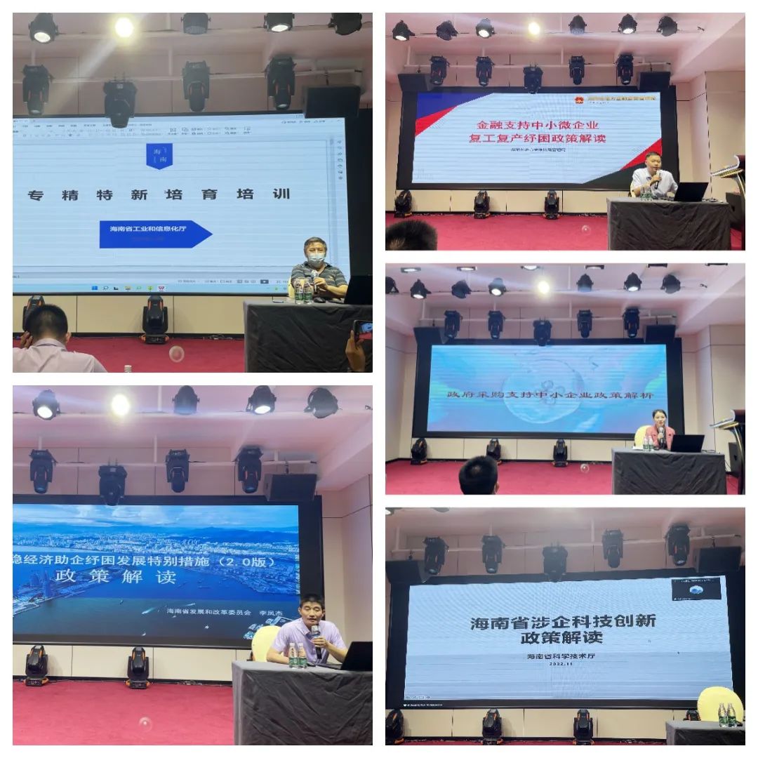 政策宣貫采取“線上+線下”的形式進(jìn)行。會(huì)上,省財(cái)政廳、省發(fā)改委、省金融監(jiān)管局、省科技廳、省工信廳等政府部門代表分別就政府采購支持中小企業(yè)政策、海南省穩(wěn)經(jīng)濟(jì)助企紓困發(fā)展特別措施(2.0版)、金融支持中小微企業(yè)復(fù)工復(fù)產(chǎn)、海南省涉企科技創(chuàng)新政策以及保障中小企業(yè)款項(xiàng)支付條例、中小企業(yè)紓困幫扶力度的若干措施及工信財(cái)政措施實(shí)施細(xì)則等惠企紓困政策進(jìn)行解讀。其中創(chuàng)新型中小企業(yè)、專精特新中小企業(yè)和專精特新“小巨人”企業(yè)的申報(bào)條件、促進(jìn)經(jīng)濟(jì)高質(zhì)量發(fā)展(工信領(lǐng)域)財(cái)政支持措施、貸款貼息、應(yīng)收貸款融資等宣貫內(nèi)容,吸引了在場(chǎng)多家企業(yè)的關(guān)注。省工信廳向參會(huì)企業(yè)發(fā)放《減輕企業(yè)負(fù)擔(dān)政策匯編(2022)》手冊(cè),幫助企業(yè)更好地了解政策、把握政策、享受政策。