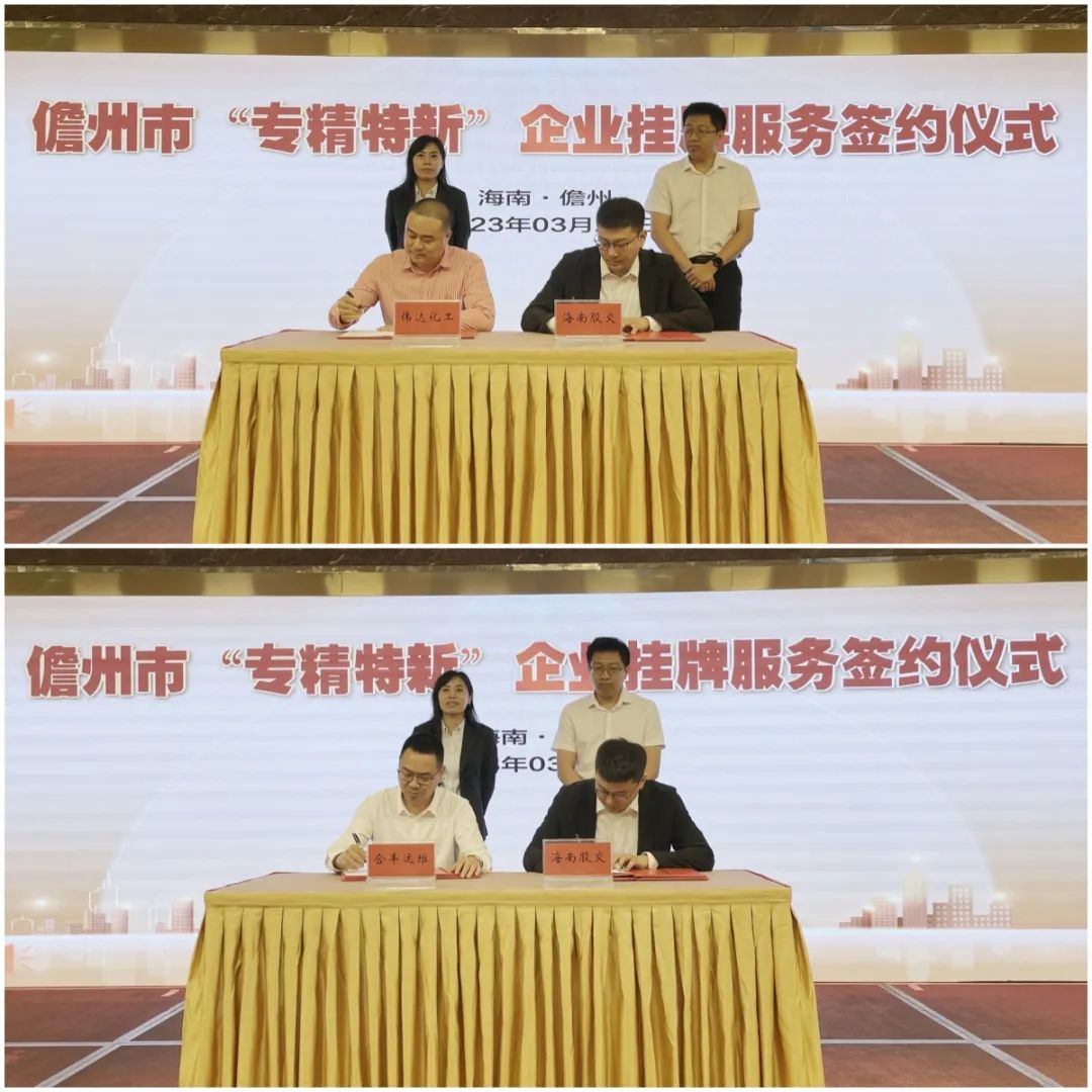 隨后,海南股交分別與儋州市“專精特新”企業(yè)代表儋州偉達(dá)化工有限公司、海南合豐運(yùn)維科技有限公司兩家企業(yè)簽訂掛牌服務(wù)協(xié)議,后續(xù)將在企業(yè)改制、投融資、培訓(xùn)、咨詢等方面為兩家企業(yè)提供深度服務(wù),助力企業(yè)規(guī)范、快速發(fā)展。