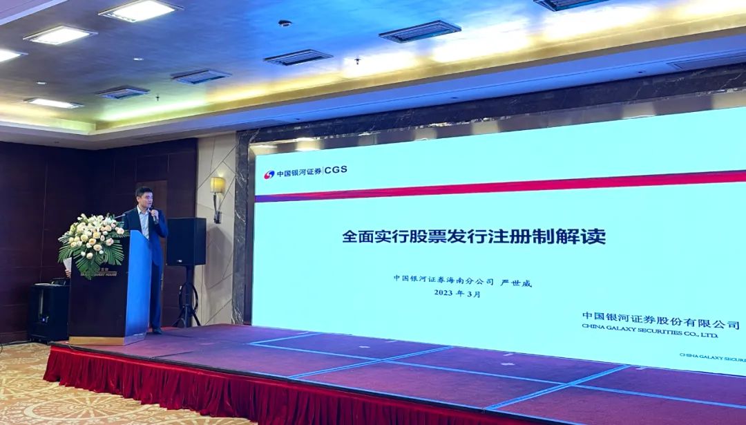 在培訓(xùn)環(huán)節(jié),培訓(xùn)由中國銀河證券海南分公司帶來“全面實(shí)行股票發(fā)行注冊制解讀”主題講座。授課導(dǎo)師圍繞上市培育全過程,從“注冊制改革概況、上市(掛牌)規(guī)則解讀、海南中小企業(yè)資本市場路徑”等幾個方向,以理論結(jié)合案例的方式進(jìn)行了系統(tǒng)講解,全面分析注冊制改革背景下,我省中小企業(yè)在上市中的機(jī)遇與挑戰(zhàn)。主辦方向參會企業(yè)代表發(fā)放《上市掛牌政策匯編》,幫助企業(yè)更好的了解我國多層次資本市場的上市要求。