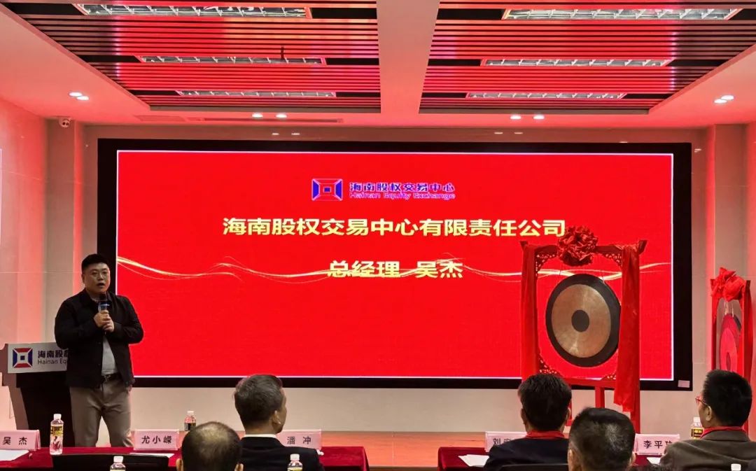 2023年12月28日下午,海南股交在老城舉辦交易板企業(yè)掛牌鳴鑼儀式,海南金控黨總支副書記、副總經(jīng)理潘沖,海南省商業(yè)總會(huì)會(huì)長(zhǎng)劉宏和,海南省貿(mào)促會(huì)國(guó)際聯(lián)絡(luò)部部長(zhǎng)李平功、四級(jí)調(diào)研員蔡國(guó)軍,海南股交總經(jīng)理吳杰及相關(guān)金融機(jī)構(gòu)、企業(yè)代表近60人參加本次活動(dòng)。四家優(yōu)質(zhì)企業(yè)??隍E文湖生態(tài)農(nóng)業(yè)開發(fā)股份有限公司、中視智行科技(海南)股份有限公司、海南逸途文旅發(fā)展股份有限公司、嘉瑞互聯(lián)網(wǎng)科技(海南)股份有限公司分別上臺(tái)鳴鑼,成功掛牌海南股交交易板。
