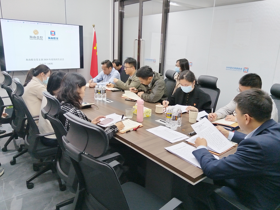 為高質(zhì)量開好2024年度組織生活會,打牢思想基礎(chǔ),3月18日,海南股交黨支部組織開展2024年度組織生活會會前集中學(xué)習(xí),會議由海南股交黨支部書記、董事長朱磊主持,海南股交黨員、預(yù)備黨員、發(fā)展對象、積極分子共18人參加。