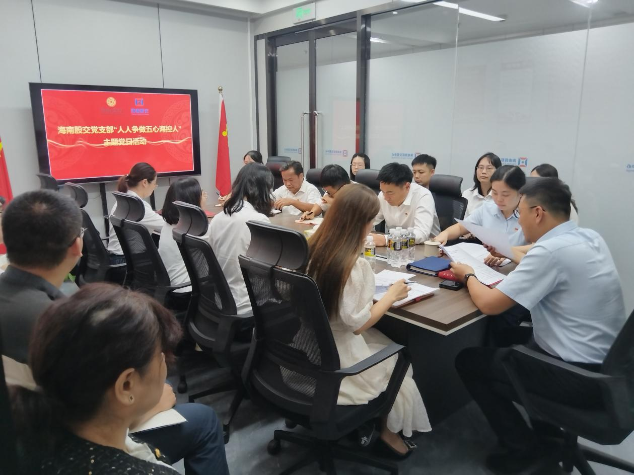 為深入貫徹落實(shí)海南控股“人人爭做五心??厝恕惫ぷ饕螅瑥?qiáng)化黨員干部責(zé)任擔(dān)當(dāng)意識(shí),提升團(tuán)隊(duì)凝聚力與戰(zhàn)斗力,近日,海南股交黨支部組織開展“人人爭做五心海控人”主題黨日活動(dòng),海南股交黨支部書記、董事長朱磊主持會(huì)議并作主題教育,全體員工參加會(huì)議。