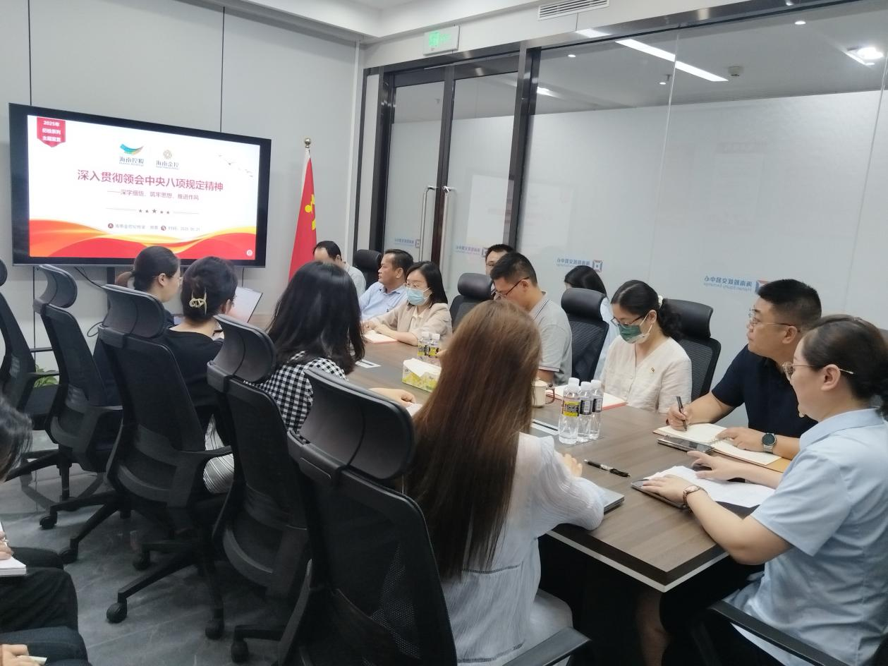 為深入貫徹落實中央八項規(guī)定精神,進一步加強黨風(fēng)廉政建設(shè),筑牢員工思想防線,推動公司作風(fēng)建設(shè)向縱深發(fā)展,5月21日,海南金控下屬海南股交開展紀(jì)檢機構(gòu)系列主題宣貫會,海南金控紀(jì)檢室鄭蓉同志作主題宣貫,海南股交全體員工參加。
