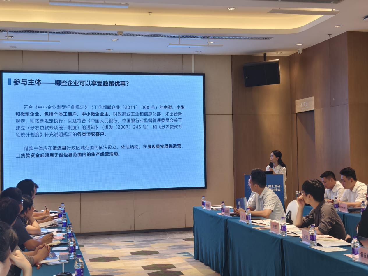 對接會設置政策解讀、產(chǎn)品推介、互動交流三大環(huán)節(jié),系統(tǒng)推進融資服務精準化、實效化。在政策解讀環(huán)節(jié),澄邁縣政府辦金融工作室負責人圍繞政策背景、參與主體、政策優(yōu)惠及貼息流程等方面重點解讀《澄邁縣企業(yè)貸款貼息資金管理辦法》,幫助企業(yè)全面了解貸款貼息政策,鼓勵企業(yè)用好用足政策紅利。海南省登記結算就“智金平臺”的功能模塊、操作流程及服務優(yōu)勢進行了講解。據(jù)悉,澄邁縣企業(yè)通過智金平臺申請貸款,不僅可享受縣級財政專項貼息支持,有效降低融資成本,還可申請使用海南省企業(yè)應急續(xù)貸資金池,獲得低成本過橋資金支持,切實緩解短期周轉壓力。